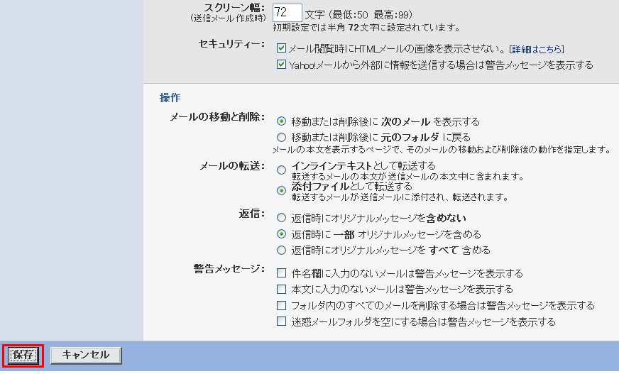 Yahoo! mailは、標準で迷惑メールフィルタ機能をサポートしていますが、機能の詳細を設定することは出来ません。メール送信フォーマットに関する設定