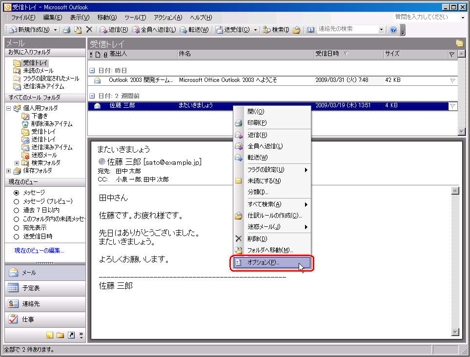 ※この画像は Microsoft(R) Office Outlook(R) 2003(11.5608.5606) で取得しています。