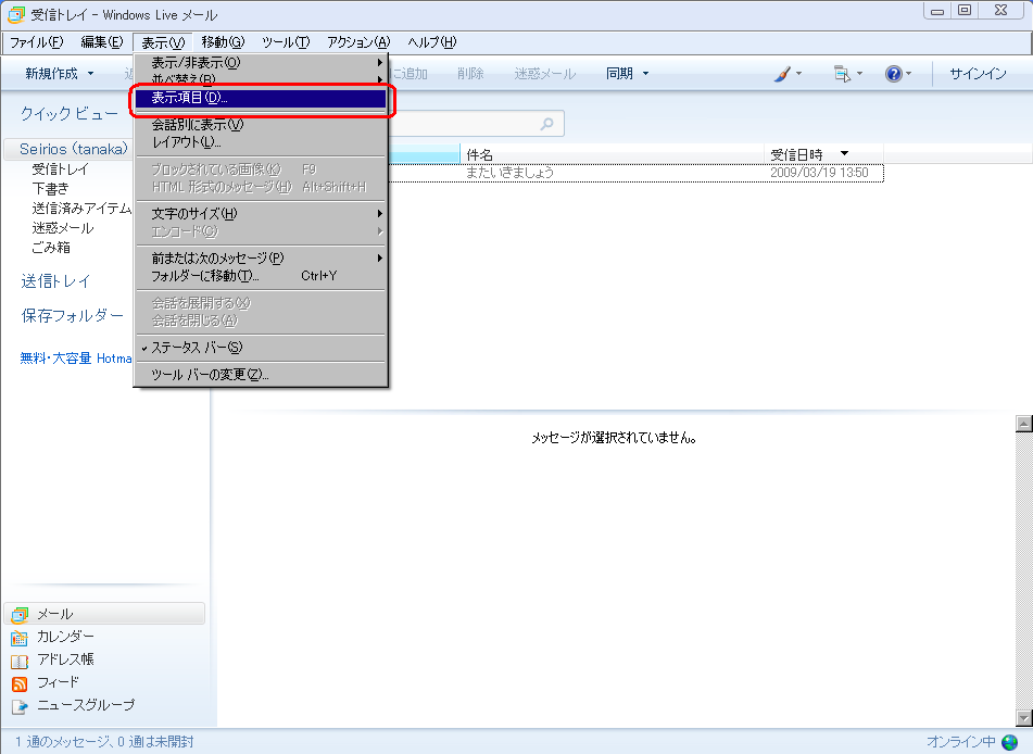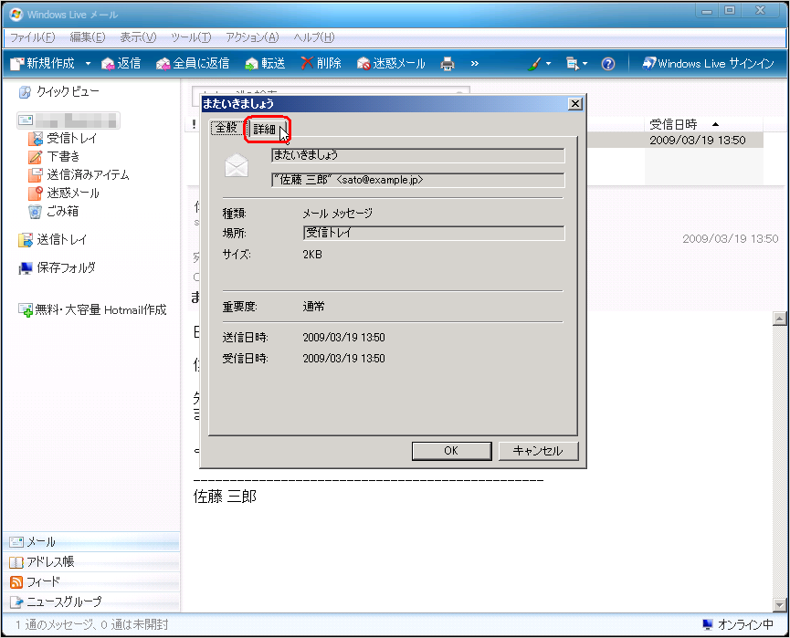 ※この画像は Windows Live Mail Version 2009 (Build 14.0.8089.0726) で取得しています。